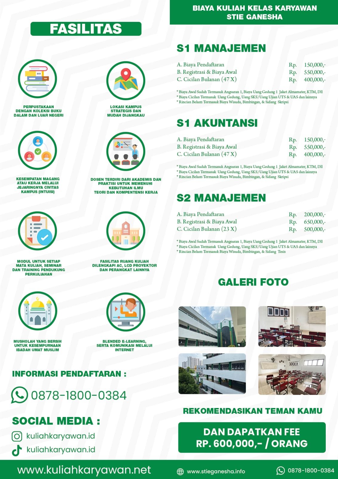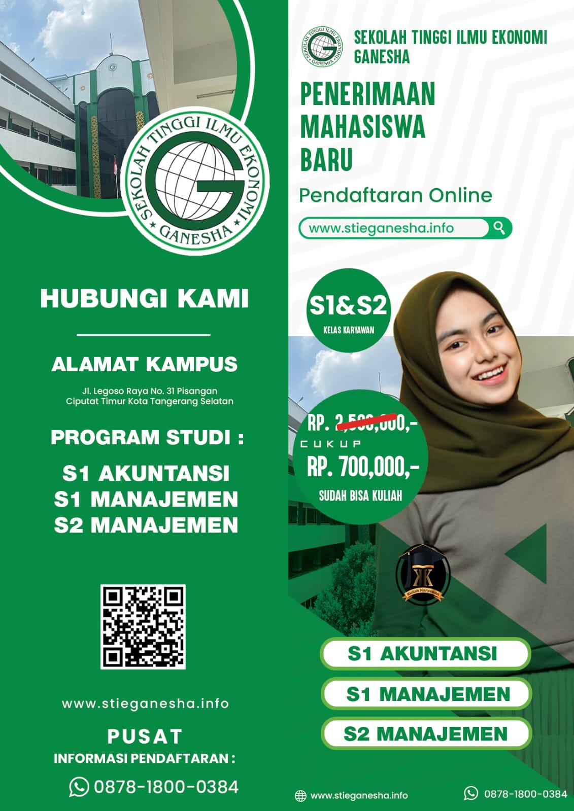Unduh brosur SEKOLAH TINGGI ILMU EKONOMI GANESHA untuk menjelajahi program studi, fasilitas, dan layanan terbaik yang siap mendukung perjalanan akademik Anda